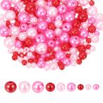 uxcell 2292個 宝石メイキング用パールビーズ 4/6/8mm穴あき丸ビーズ ブレスレットネックレス花瓶詰め用 ライトピンク ピーチ レッド