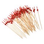 uxcell カクテルつまようじ 120mm 竹 レッド パールビーズ 長いフルーツスティック飾り カクテル串ピック ドリンク レッド 100個
