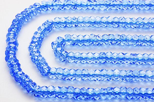 【カットビーズ】ブルークォーツ 20面ボタン型カット 3×5mm 【パワーストーン 天然石 アクセサリー 1連売り】