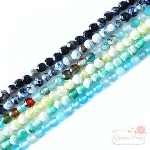 天然石 ビーズ アゲート 多面カット ボタンカット(染め)ジェムストーン 半貴石 アクセサリーパーツ 4×2mm 1連【tb-181 グレー】 GreenRoseYumi