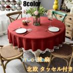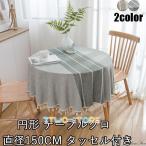 直径120cm 綿麻 北欧 タッセル付き テーブルクロス 食卓カバー 円形 テーブルカバー 無地 テーブルマット レース裾 フリンジ裾 おしゃれ 撥水加工