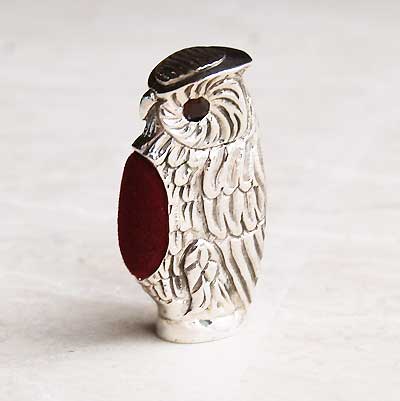銀製のピンクッション フクロウ 英国の上品な裁縫道具