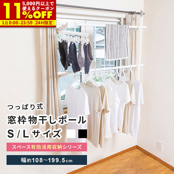 【11%OFFクーポン配布中★12/1に使える】 物干し 室内 窓枠物干し ポール つっぱり Sサイズ Lサイズ 洗濯ハンガーラック 室内干し 窓枠 屋内 物干しポール 物干しラック 洗濯 ハンガーポール コンパクト ブラック ホワイト 白 おしゃれ 伸縮