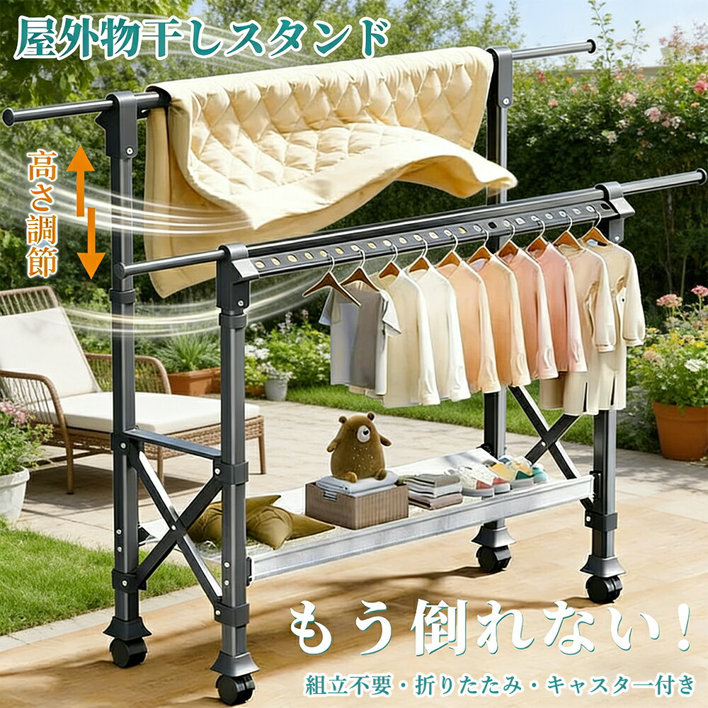 10%OFF!\SNSで話題 もう倒れない! /物干しスタンド 屋外 風に強い 屋外 物干し台 ベランダ物干し 多機能物干し台 布団干し 伸縮 室内物干し 洗濯物干し 収納 洗濯ハンガー 折りたたみ 超耐荷重物 多機能 屋外耐風 大容量 錆びにくい 長さ調節可能