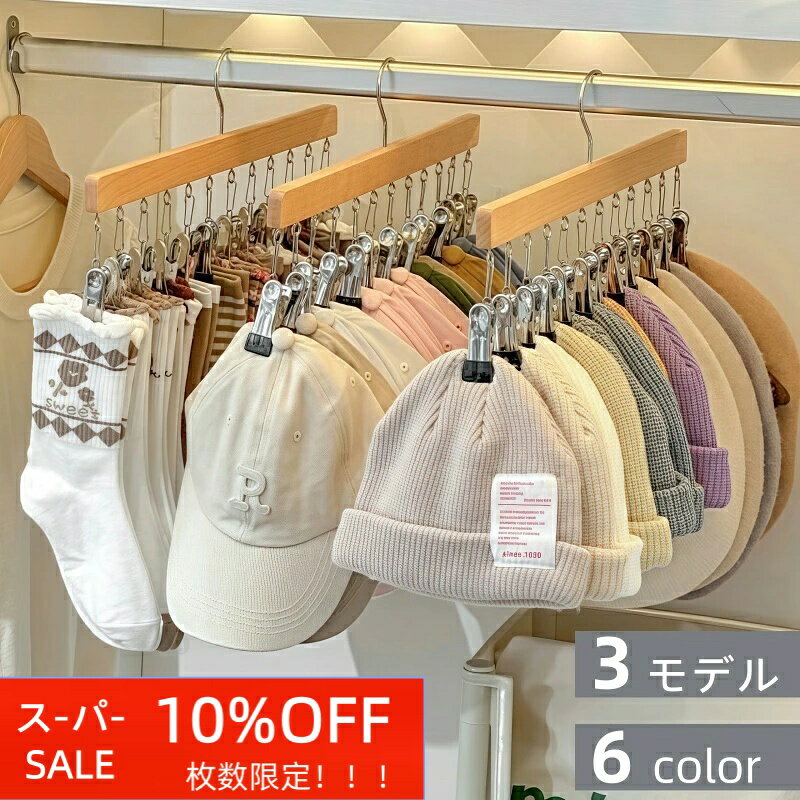 【ス-パ-SALE! 10%OFFクーポン】【2点セット】 ハンガー 多機能ハンガー キャップ收納 ピンチハンガー ネクタイハンガー ブラ収納ハンガー ナチュラル ウッド クリップハンガー クローゼット省スペース 収納 高級 たっぷり ハンガー 整理 すべらない ベルト スカーフ