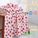 バスタオル タオル フェイスタオル 2枚組 大判 しっかり 吸水 ふんわり イチゴ柄 速乾 ペットタオル ホテルタオル マイクロファイバー