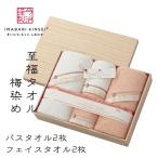 当日出荷 今治謹製 至福タオル 梅染め 木箱入り バスタオル2枚・フェイスタオル2枚セット 〈SH66100〉 今治タオル ギフト