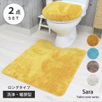 トイレマット セット マット フタカバー 洗浄型フタカバー ロング 洗える 丸洗い 60×80 ロングタイプ イエロー ブルー アイボリー グレー サラ