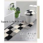 トイレマット 秋冬 3点セット 6色 チェック トイレマット+フタカバー +バスマット 吸水 抗菌防臭 滑り止め 洗える 厚手 トイレ用品