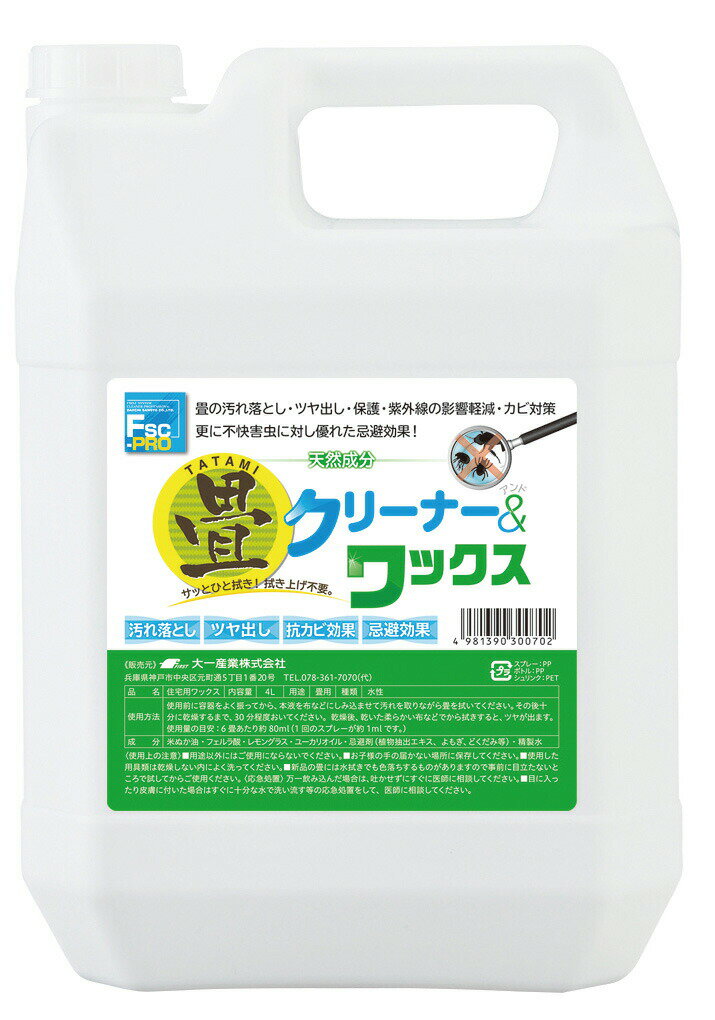 【楽天スーパーSALE 10%OFF】大一産業 畳用クリーナー&ワックス 4リットル 汚れ落とし ツヤ出し 保護 紫外線 カビ対策 不快害虫 忌避