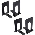 ブックエンド 卓上 倒れない ブックスタンド 薄型 本立て T字 高さ16cm (ブラック, 4個セット)