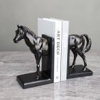 ヨーロピアン風のブラック仕上げ 馬型 ブックスタンド ブックエンド 置物 オブジェ 雑貨 インテリア 動物 アニマル おしゃれ ホース