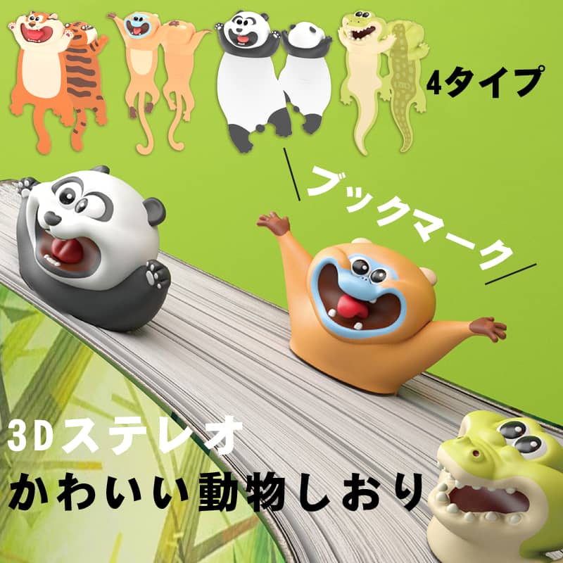 「10%OFFクーポン配布中」しおり 栞 ブックマーク 3Dステレオ かわいい動物しおり 4タイプ おしゃれ 面白い 動物 パンダ プレゼント ギフト