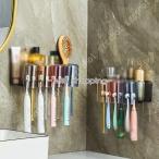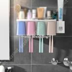 歯ブラシスタンド 収納ラック 歯磨き粉ディスペンサー お風呂 洗面所 大容量収納棚 穴あけ不要 家族用 カップル用 壁掛け式 歯ブラシたて