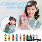 水筒 子供 カバー付き おしゃれ 直飲み 630ml キッズ 2way ステンレス 肩掛け 保温保冷 軽量 通園 通学 ギフト キャラクター スポンジブラシプレゼント