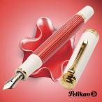 ペリカン 万年筆 吸入式 スーベレーン M600 レッド ストライプ F 細字 928788 筆記具