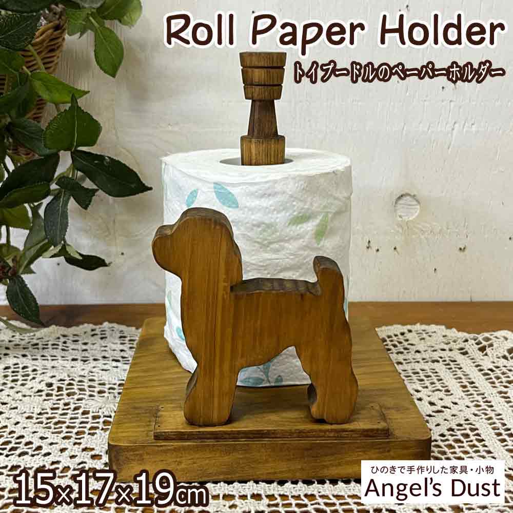 【期間限定10%OFF】ロールペーパーホルダー 角型 トイプードル 前向き 15x17x19cm 木製 ひのき ハンドメイド オーダーメイド