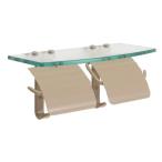 トイレットペーパーホルダー ダブル ツイン 2連 ガラスシェルフ 飾り棚 真鍮 スタンダード アースグレイ GI-227046