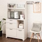 カントリー風 可愛い 木目 木製 ナチュラル 収納 家電収納キッチンボード 幅90 ホワイト色