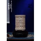 天然 モンマスの牙 精巧彫刻 万福筆筒