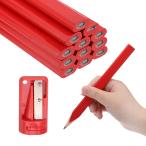 uxcell 12本 建築用鉛筆 専用の鉛筆削り付き 八角形 大工用鉛筆 建築製図 マーキングペン 黒芯カーペンターペンシル 赤
