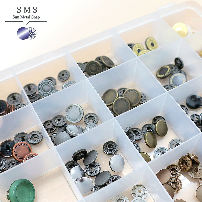 CHERRY LABEL プラスチックスナップ 57組 セット SMS 13mm 15mm ケース付 | カジテック チェリーレーベル プラスナップ ホック ボタン プラボタン ポリボタン 大容量 ハンドメイド 手作り 手芸