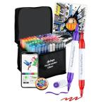 アクリルマーカー 120色セット 色付き号水性ペン アプリ付き カラーペン 毒性無し 防水 速乾 耐光 太細両端 プラ板/ガラス/陶器/木材/布