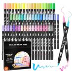 Shuttle Art アートマーカーペン 筆先 パステルカラー 56色セット 水性 カラーペン ブラシ・細字のペン先 ツインマーカー 耐水 速