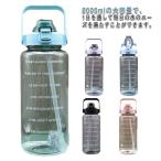 水筒 ウォーターボトル タイムマーカー付き 2L 目盛り付き 大容量 透明 ストロー付き 携帯便利 漏れ防止 軽量 直飲み スポーツ 登山 男女兼用