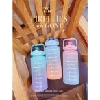 2000ml グラデーション 水筒 タイムマーカー付き 2リットル ウォーターボトル おしゃれ 大容量 軽量 ストロー