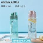 520ML 水筒 目盛り付き 携帯水筒 ストラップ付き ワンタッチ タイムマーカー ドリンクボトル アウトドア スポーツ 漏れ防止 アンチウォータボトル 洗いやすい