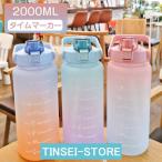 水筒 目盛り付き 水筒 2L ウォーターボトル 2リットル タイムマーカー 携帯便利 漏れ防止 ストロー付き 子供 キッズ 目盛り 大容量 軽量 直飲み 女の子 おしゃれ