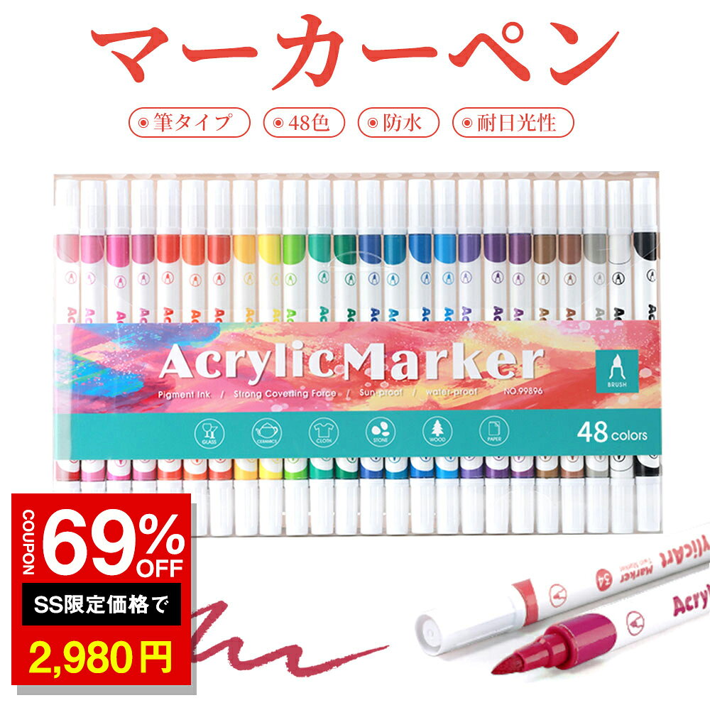 \SS激安 69%OFF→2980円/48色 マーカーペン 蛍光マーカー 筆タイプ サインペン ツインマーカー 太字 細字 イラスト プロ愛用 中間色 イラスト イラストマーカー 筆?細字 カラフルな色彩 セット アルコール系