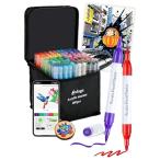 アクリルマーカー 60色セット 色付き号水性ペン 無料アプリ付き カラーペン 毒性無し 防水 速乾 耐光 太細両端 プラ板/ガラス/陶器/木材/布/石に書ける ハンドメ