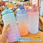 水筒 2L 目盛り付き 水筒 ストロー 2リットル ウォーターボトル タイムマーカー 携帯便利 漏れ防止 大容量 軽量 直飲み グラデーション プレゼント