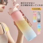 タイムマーカー付き 水筒 ウォーターボトル 1リットル ストロー付き 耐冷耐熱 大容量 漏れない 超軽量 おしゃれ スポーツ 携帯便利 アウトドア