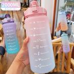 2000ML タイムマーカー付き ウォーターボトル 大容量 2L 軽量 水筒 目盛り おしゃれ 2リットル ストロー水筒 外出 ランキング ギフト スポーツ
