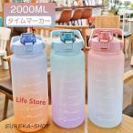 2000ml グラデーション 水筒 タイムマーカー付き 2リットル ウォーターボトル おしゃれ 大容量 軽量 ストロー