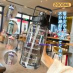 水筒 目盛り付き 水筒 2L ウォーターボトル 2リットル タイムマーカー 携帯便利 漏れ防止 ストロー付き 子供 キッズ 目盛り 大容量 軽量