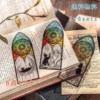 六枚セット しおり 栞 ブックマーカー 本のしおり 記念品 景品 文房具 小物 猫柄 プラスチック ステンドグラス 透明 レトロ 本 読書 プレゼント ギフト かわいい