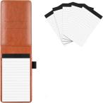 a7 メモ帳 6点セット ノート 縦型 PUレザー カードポケット 便利 仕事 ビジネス手帳 携帯に便利 オフィス用品 (ブラウン)