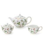 <ウェッジウッド 3点セット>ウェッジウッド ワイルドストロベリー ティーポット 小+シュガーボックス 小+クリーマー 小 新生活応援