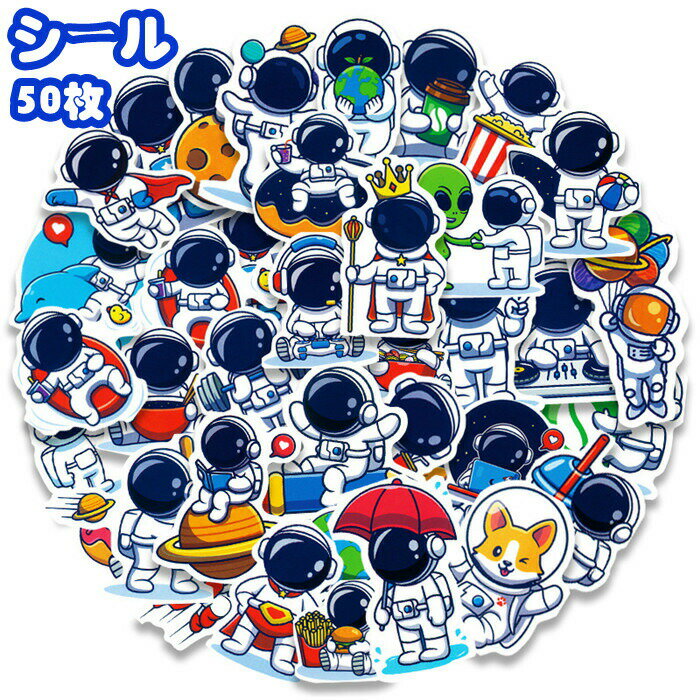 【時間限定全品10%OFF】手帳シール 50枚 PVC 宇宙飛行士 シールシート 年賀ステッカー 手帳デコ コレクション 雑貨