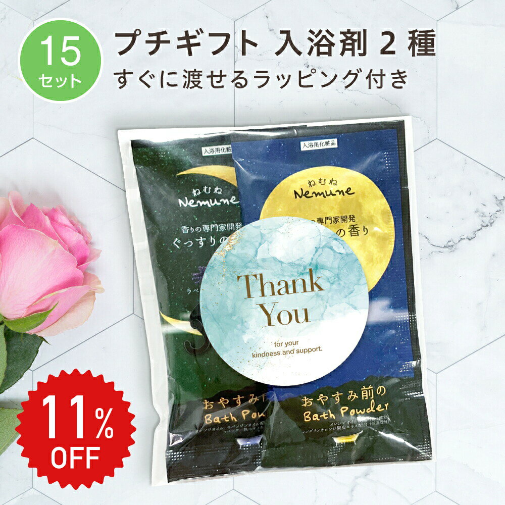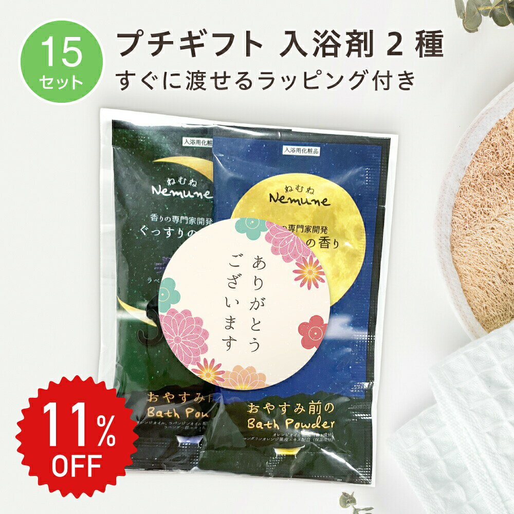 11%OFF★【15セット】 プチギフト 入浴剤 ねむね 2種 OPP袋 シール 個包装 小分け おしゃれ 退職 お礼 ありがとう お世話になりました お返し 配り用 プレゼント 女性 男性 挨拶 転勤 異動 挨拶 メッセージ イベント 粗品 ノベルティ
