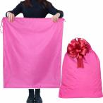 ラッピング袋 超特大 リボン付き 巾着タイプ ギフトバッグ 大きいサイズ プレゼント包装 ナイロン製 (ピンク, 90x70cm)