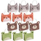 ラッピング袋 アニマルフェイス 手提げ袋 紙袋 4種セット カラフル(オレンジ グリーン ブラウン グレー(12))