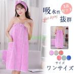 ラップタオル レディース 2点 バスローブ バスタオル 着るタオル タオルキャップ タオルケット 吸水 美容室エステ シャワー お風呂 温泉