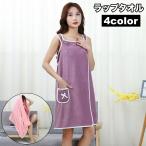ラップタオル 着るバスタオル 巻きタオル レディース タオルワンピース バスローブ 湯上りタオル リボン ポケット付き おしゃれ かわいい バス用品