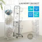 ランドリーバスケット 3段 洗濯カゴ スリム ランドリーワゴン 脱衣かご 洗濯物入れ おしゃれ ワイヤーバスケット キャスター付き 大容量