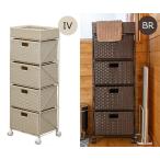 チェスト 収納 ストッカー 収納ボックス 4段 + かご ランドリーバスケット 通気性 引き出し ワゴン ラタン調 タンス ブラウン アイボリー